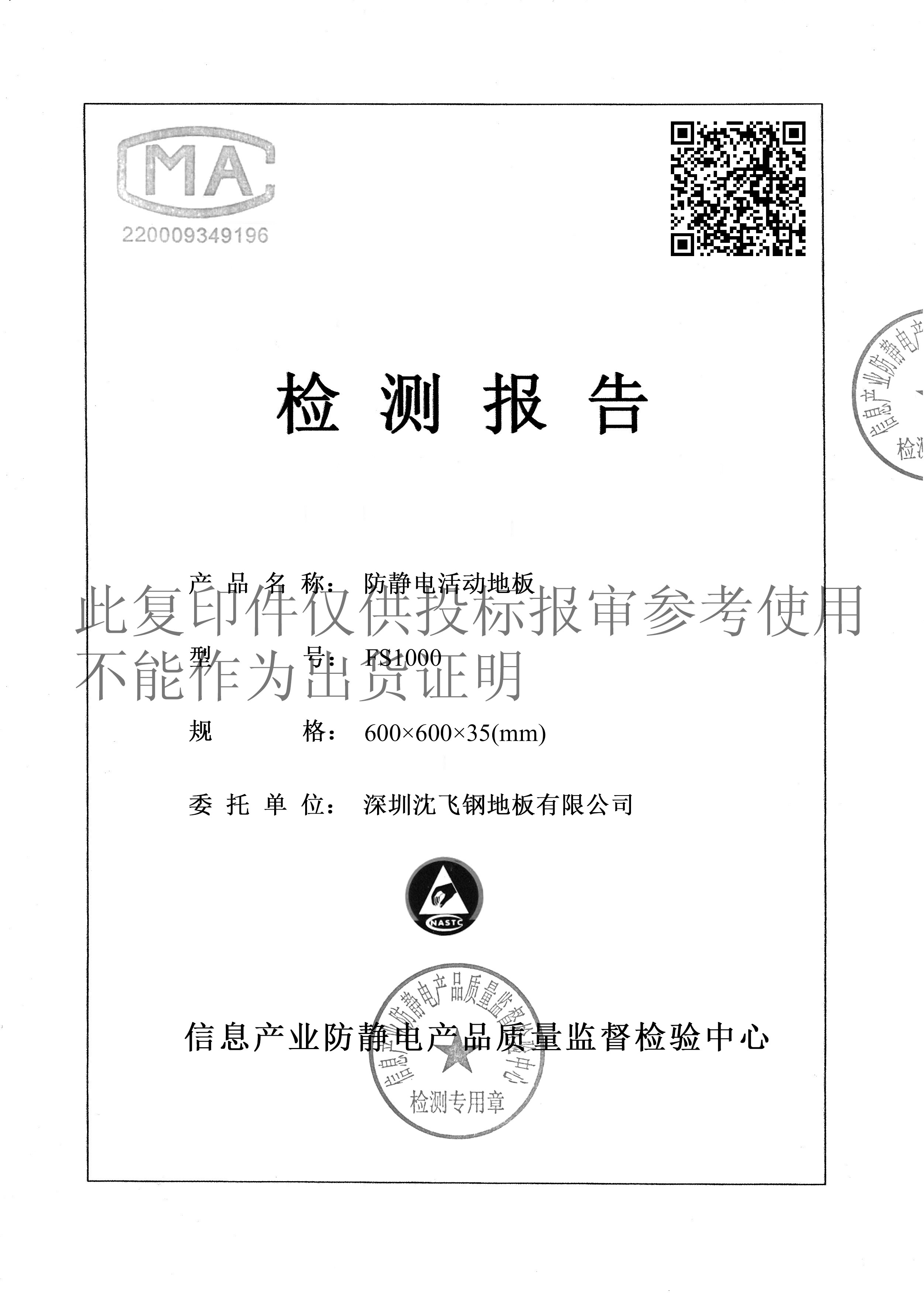 深圳沈飛地板檢驗(yàn)報(bào)告,深圳沈飛防靜電地板檢測(cè)報(bào)告證書(shū)